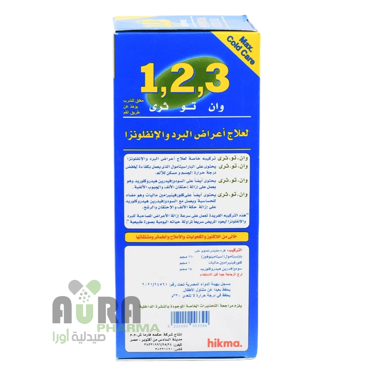 يتوافر دواء one two three syrup بحجم 120 مل.