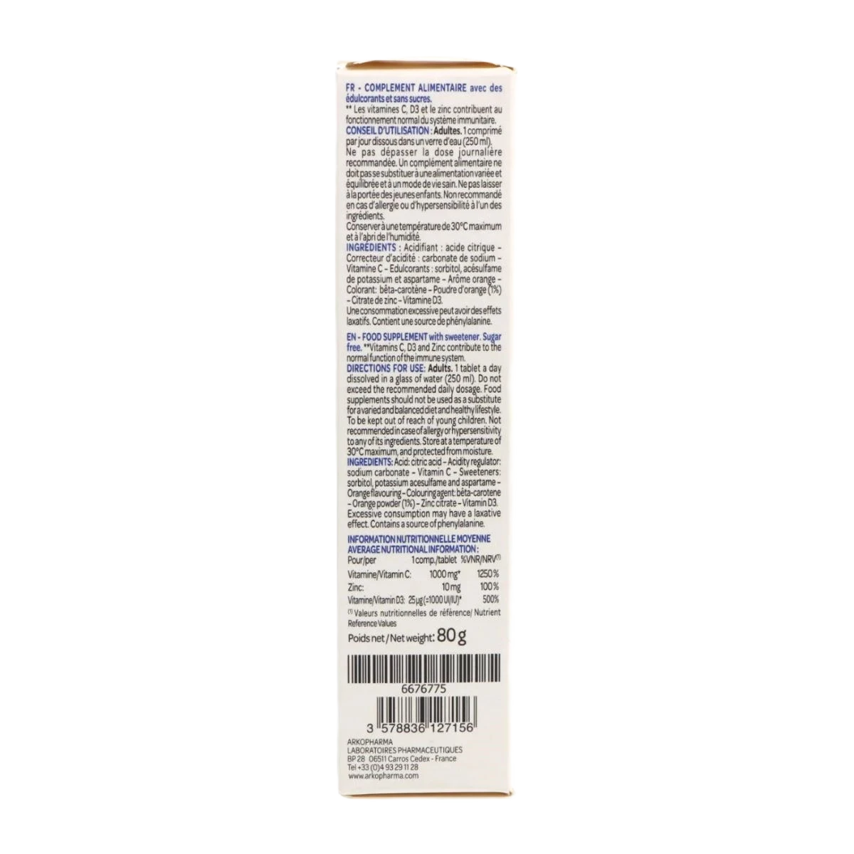 Arkopharma Vitamin C&D + Zinc هو مكمل غذائي يحتوي على فيتامين C و D3 والزنك، مما يعزز الأداء الطبيعي للجهاز المناعي.