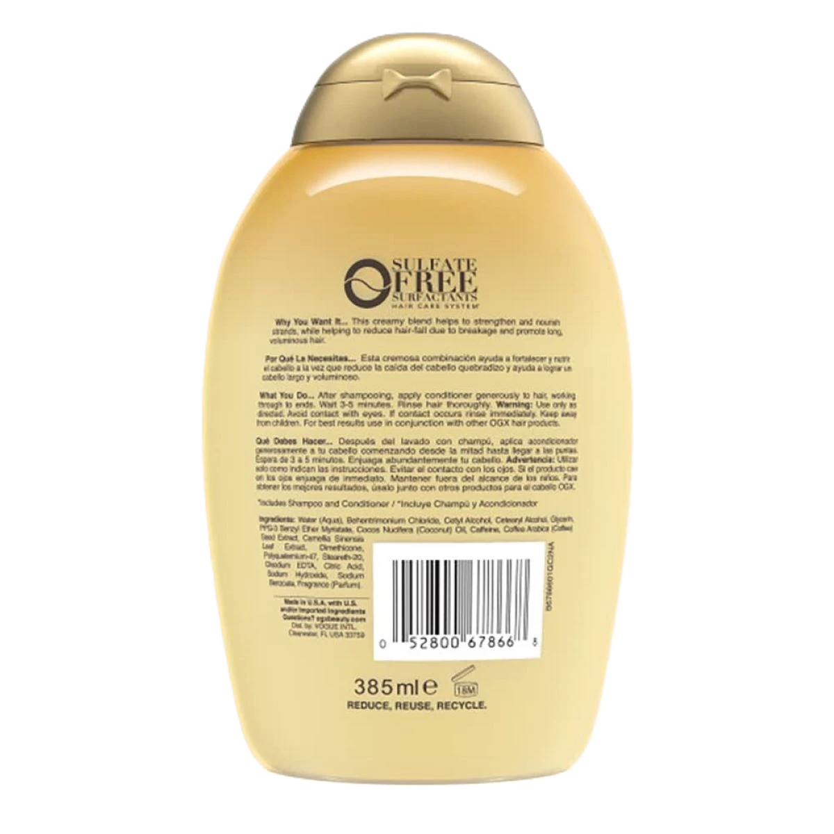 للحصول على أفضل النتائج، استخدميه مع شامبو اوجي اكس المضاد لتساقط الشعر +زيت جوز الهند والكافيين .