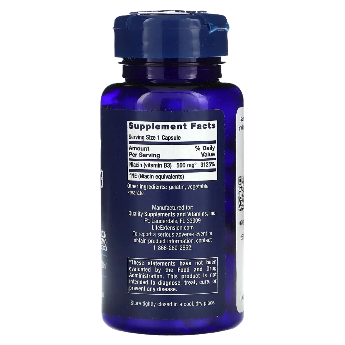 تحتوي كل كبسولة على 500 مجم من فيتامين B3.