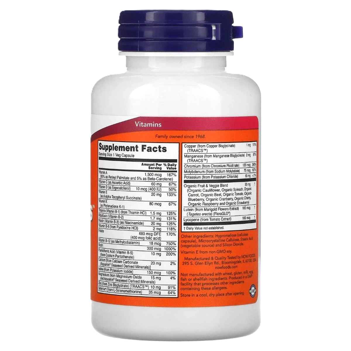 كبسولات دايلي فيتس مالتي فيتامين ومعادن (120 كبسولة نباتية) – NOW Foods هي مكمل غذائي متعدد الفيتامينات والمعادن يهدف إلى تلبية احتياجات الجسم اليومية من الفيتامينات والمعادن الأساسية. يأتي هذا المنتج من NOW Foods، وهي علامة تجارية معروفة في مجال المكملات الغذائية. إليك معلومات تفصيلية عن هذا المكمل: