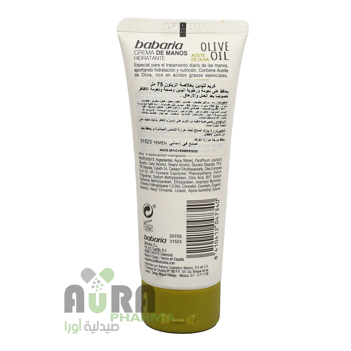 لترطيب وتغذية اليدين بفضل تركيبته التي تحتوي على زيت الزيتون.