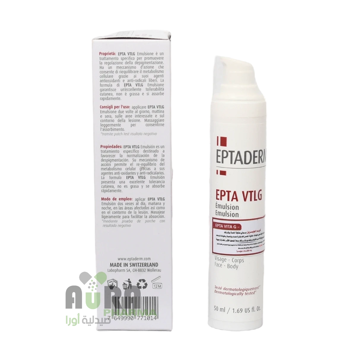 مستحلب EPTA VTLG هو علاج محدد لتعزيز تنظيم إزالة التصبغ. تسمح آلية عملها بإعادة توازن عملية التمثيل الغذائي لخلايا الجلد بفضل عواملها المضادة للأكسدة والمضادة للجذور. تمنح تركيبة مستحلب EPTA VTLG قدرة تحمل ممتازة للبشرة، فهي ليست دهنية وتتغلغل بسرعة.