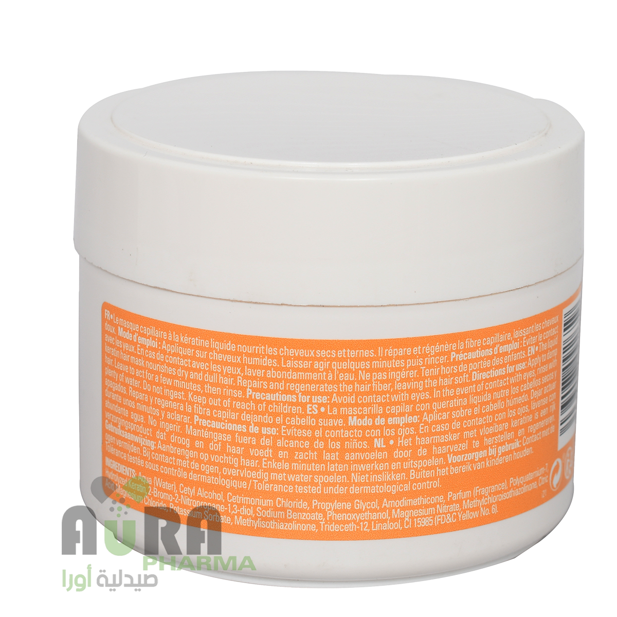 يساعد الكيراتين الموجود بالفعل في الشعر على إعادة تكوين البنية الداخلية لألياف الشعر ويعزز الحماية الطبيعية للشعر.