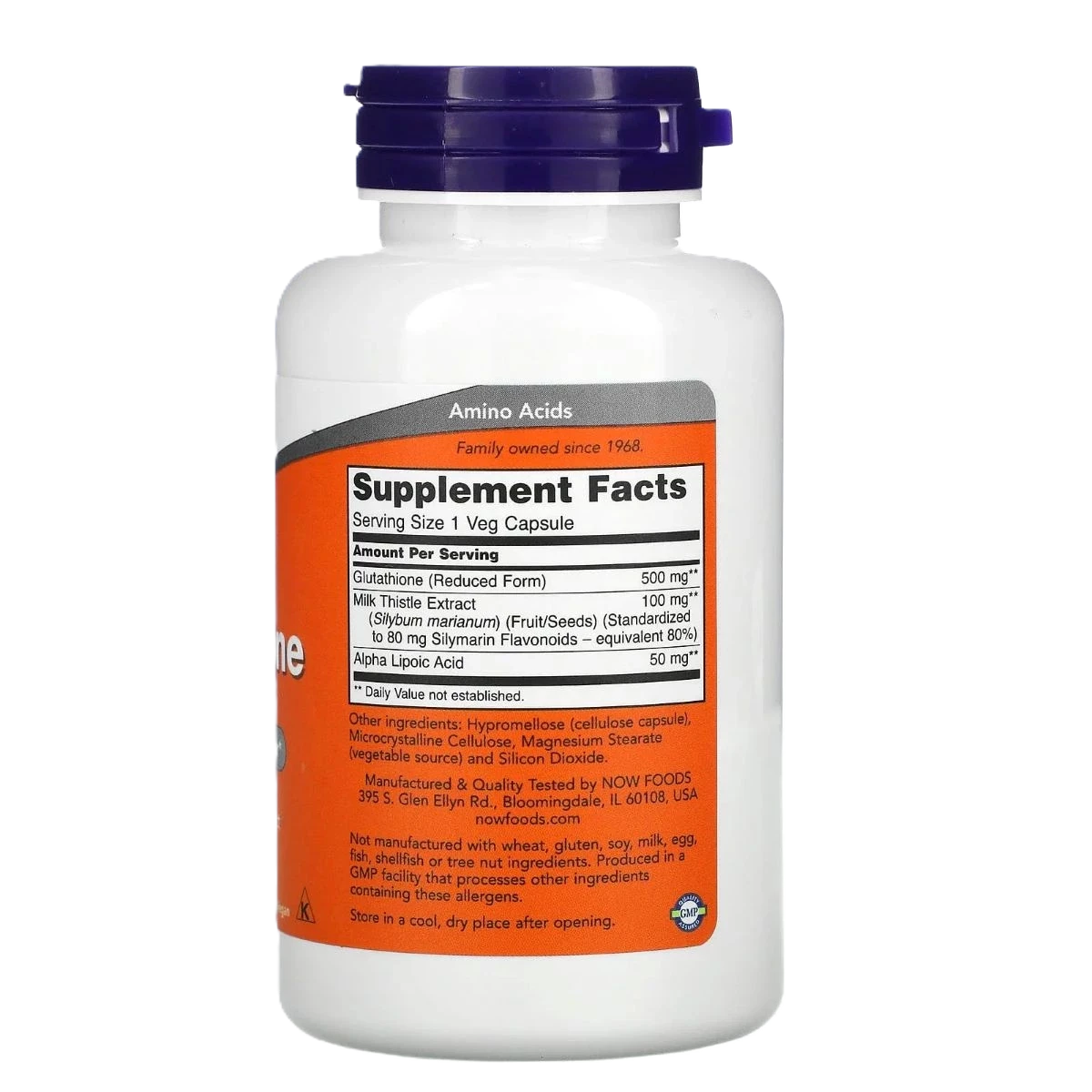 الجلوتاثيون هو جزيء ببتيد صغير يتكون من ثلاثة أحماض أمينية: السيستين وحمض الجلوتاميك والجلايسين. يتم إنتاجه بواسطة كل خلية من خلايا الجسم، مع مستويات عالية بشكل خاص في الكبد.* الجلوتاثيون ضروري لوظيفة الجهاز المناعي الصحية، وضروري لعمليات إزالة السموم المناسبة، ويدعم الشيخوخة الصحية.* كما يلعب دورًا مهمًا في الحفاظ على صحة الخلايا من خلال تحييد الجذور الحرة بشكل مباشر، وكذلك من خلال الحفاظ على نشاط فيتامينات C وE.* مستخلص شوك الحليب وحمض ألفا ليبويك متضمنان كمكونات تكميلية.