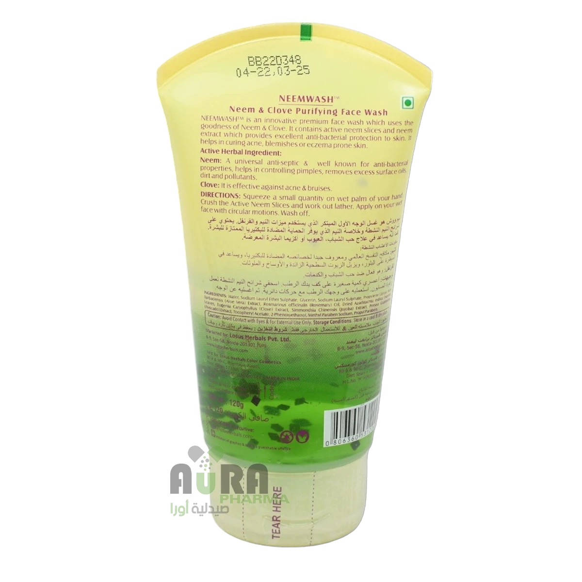 غسول الوجه لوتس نيمواش بالنيم والقرنفل فائق التنقية يزيل بشكل فعال شوائب الجلد والأوساخ والأوساخ من الوجه. يضفي توهجًا شفافًا على البشرة ويساعد في التحكم في البثور عن طريق إزالة الأوساخ السطحية الزائدة وزيت الجلد. يعمل غسول الوجه العشبي هذا بشكل استثنائي في علاج البشرة المعرضة لحب الشباب والأكزيما. إنها تركيبة مبتكرة ومتوازنة غنية بالمكونات الطبيعية مثل مستخلصات النيم ومستخلصات القرنفل التي توفر الحماية البكتيرية للبشرة. تركيبة فريدة من نوعها لغسول الوجه ستترك وجهك نظيفًا للغاية وملمسه الشبيه بالجل رغوي جيدًا ويمنحك شعورًا منعشًا ومهدئًا. مناسب لجميع أنواع البشرة ولطيف بما فيه الكفاية للاستخدام اليومي. تأتي مع عبوة 120 جرام