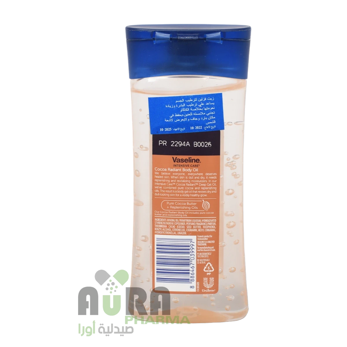 يحتوي على زبدة الكاكاو وخليط من الفازلين، يساعد زيت جل الجسم المشع بالكاكاو للعناية المركزة في الحفاظ على نضارة وصحة بشرتك. تجمع تركيبتنا الغنية بين الكاكاو النقي بنسبة 100% وزبدة الشيا، مما يمنحك توهجًا طبيعيًا. يوفر زيت جل الجسم المشع بالكاكاو للعناية المركزة من فازلين ترطيبًا عميقًا لروتينك اليومي للعناية بالبشرة، بما يتجاوز الترطيب الأساسي. تعمل مجموعة العناية المركزة الخاصة بنا على علاج البشرة الجافة من أعماقها. غني بقطرات صغيرة من هلام الفازلين العلاجي، زيت جل الجسم المشع بالكاكاو للعناية المكثفة من فازلين يحبس الرطوبة بشكل فعال، مما يضمن ترطيبًا طويل الأمد لبشرتك. مع مزيج فريد من المكونات المغذية، يعمل زيت جل الجسم المرطب على تجديد الرطوبة الأساسية لبشرتك، ويستعيد حيويتها الطبيعية ويضفي توهجًا صحيًا ومشرقًا. التعرض اليومي للعوامل البيئية يمكن أن يضر بحاجز الرطوبة الطبيعي للبشرة، مما يؤدي إلى فقدان الماء والجفاف. زيت الجل الخاص بنا، الغني بقطرات صغيرة من هلام الفازلين العلاجي، يحبس الرطوبة بشكل فعال، مما يسهل استعادة الحاجز الطبيعي للبشرة. يمكنك الحصول على بشرة ناعمة ورطبة مع زيت الجسم من فازلين للعناية المركزة بالكاكاو. مصنوع من زبدة الكاكاو النقية والزيوت المجددة، زيت جل الجسم المشع بالكاكاو للعناية المكثفة من فازلين يعزز المظهر الصحي والمشرق للبشرة. يحبس زيت جل الجسم الرطوبة للمساعدة في تنشيط البشرة الجافة والباهتة. نوع البشرة الملائم: البشرة الجافة والبشرة الباهتة.
